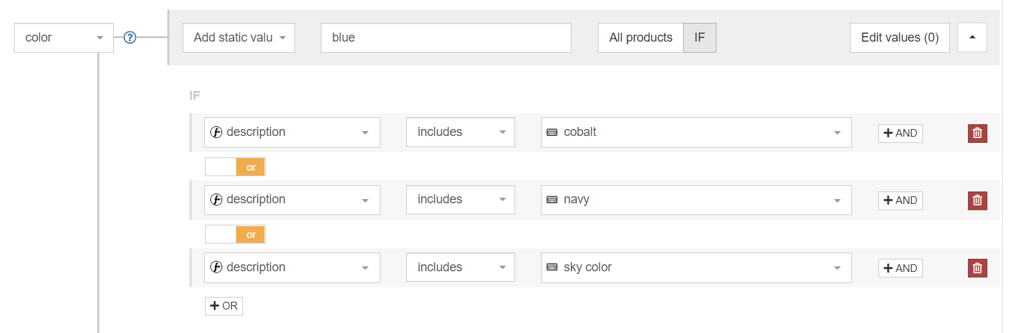 Puoi usare quei campi per costruire una regola che assegni i colori specificati da te agli articoli appropriati. Ecco un esempio di come potrebbe essere la regola: