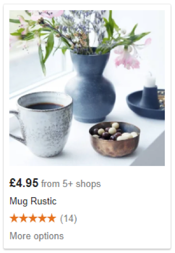 Per esempio, l’immagine a sinistra è relativa ad una tazza. Nonostante ciò, gli oggetti di scena non permettono di far spiccare il prodotto.